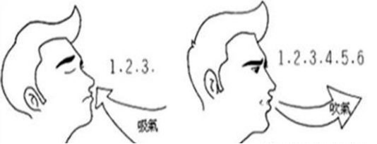 ④口哨式呼气:先用鼻吸气一大口,用唇呈吹口哨状用力呼气,做5~10次。