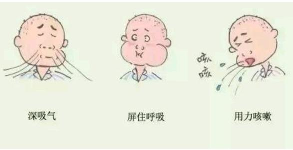 深吸一口气后屏气 3~5 秒,在胸腔内进行两三次短促有力咳嗽,然后进行一次深咳,张口咳出痰液。