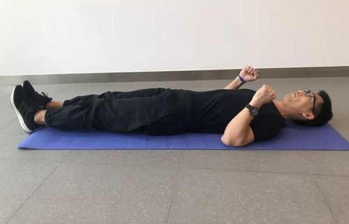 ①仰卧状态,两手握拳同时肘关节屈曲伸展5~10次,平静深呼吸5~10次。